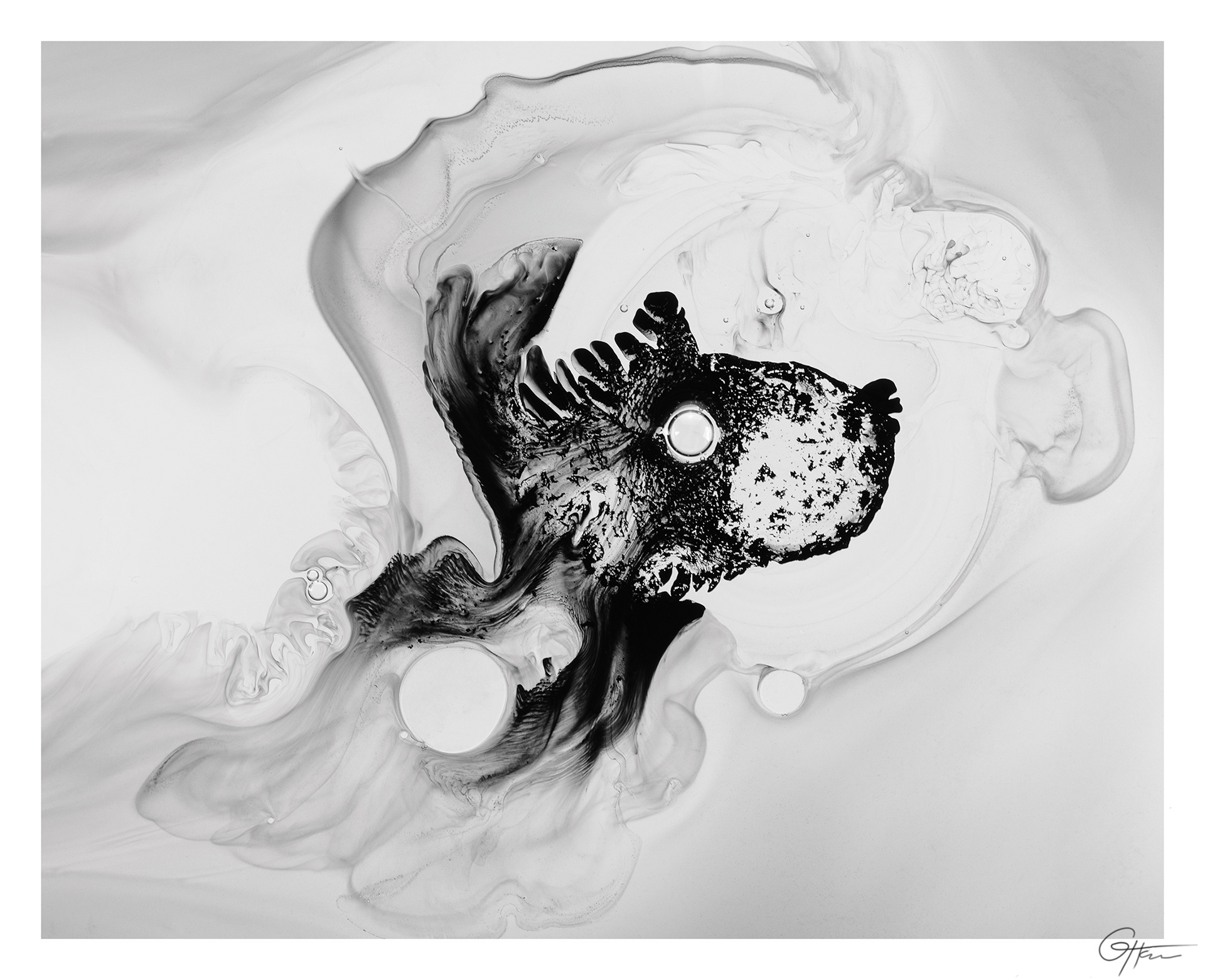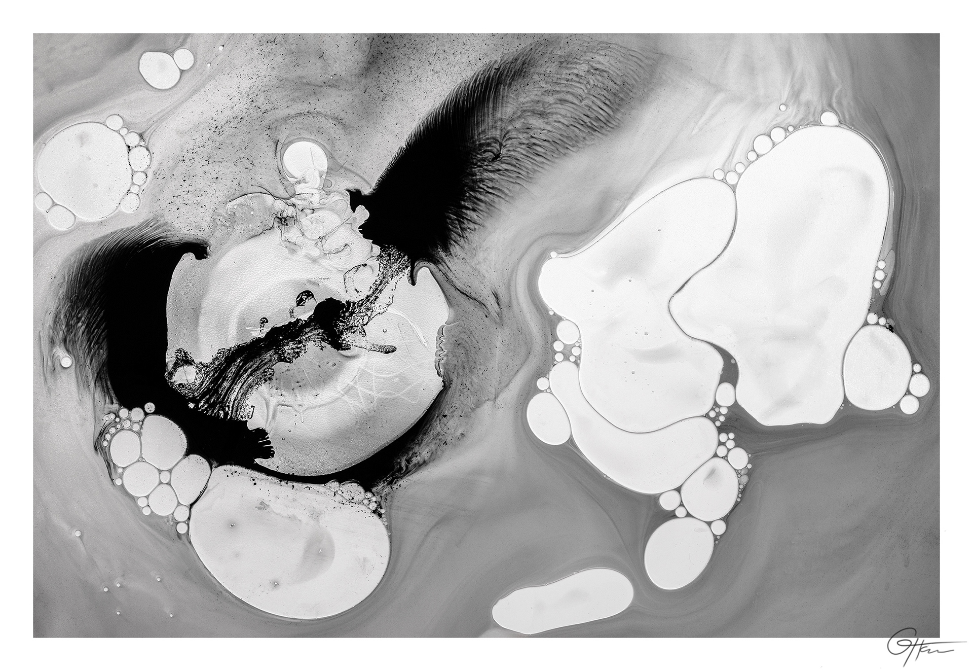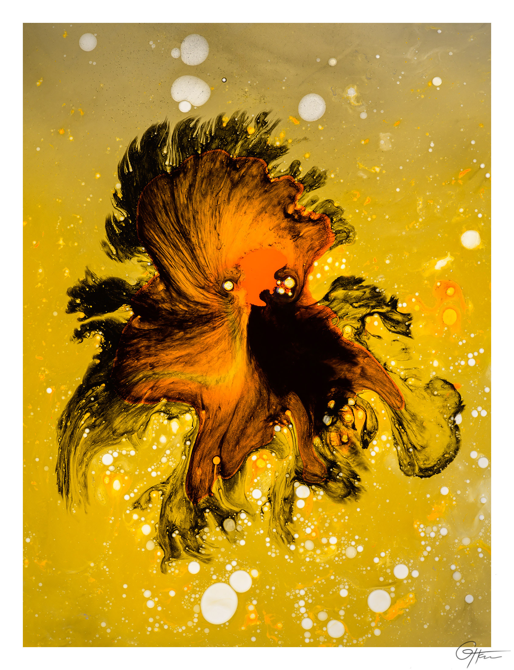 Encre de seiche, huile, glycérine, eau