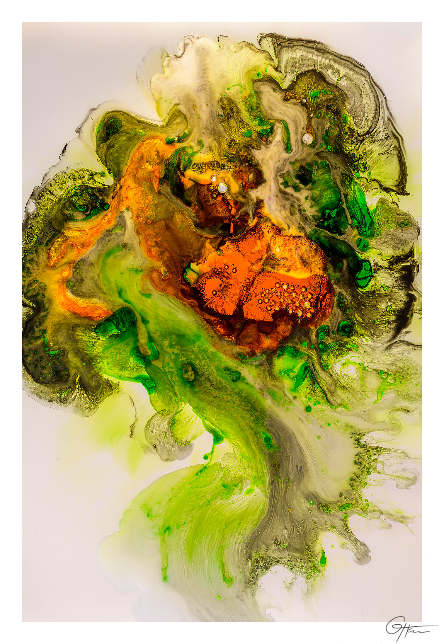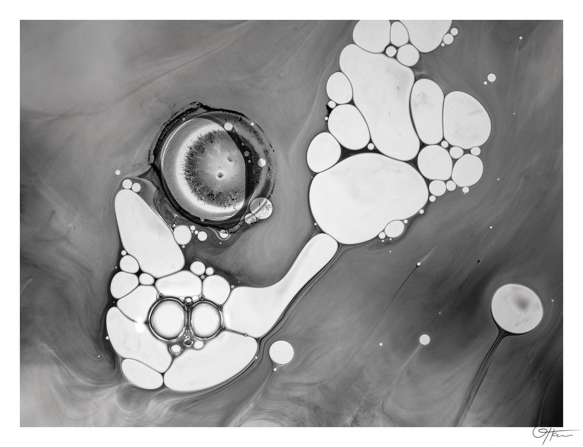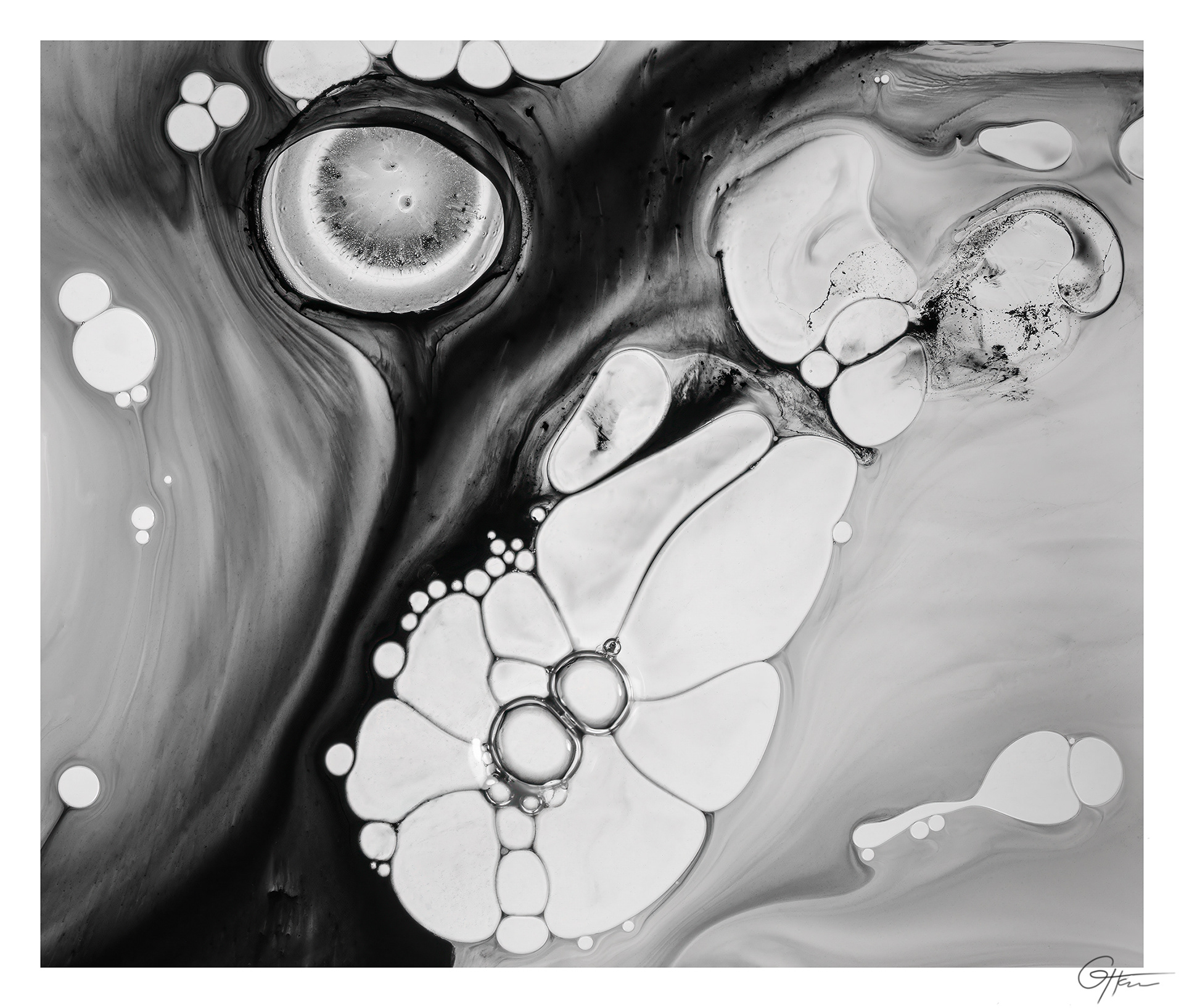 Encre de seiche, huile, glycérine, eau